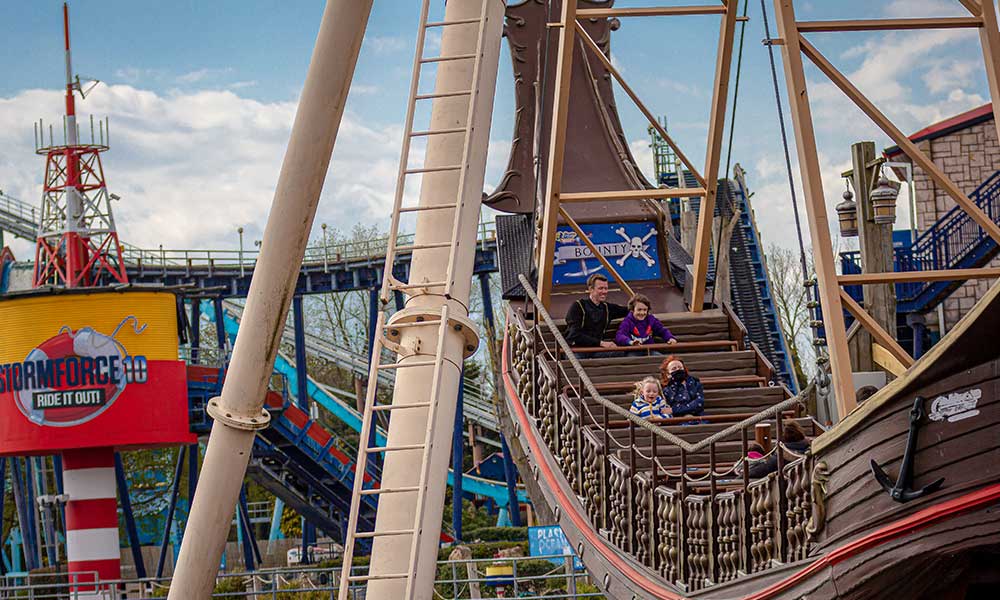 Climb aboard the Bounty and hold on tight as you experience the thrill of this classic pirate ship ride. Swing higher and higher over Fisherman's Wharf, until you can almost see the whole park, then plunge back towards the ground with stomach-dropping speed. Thrill seekers and adventurous families alike will love this giant swinging ship, which takes budding buccaneers on the ride of their lives!